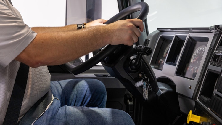 Flat-bottom steering wheel with cruise control, telephone, and radio/audio controls gives drivers more room for entry/exit and operation. Tilt-telescopic steering column lets drivers adjust their comfort.