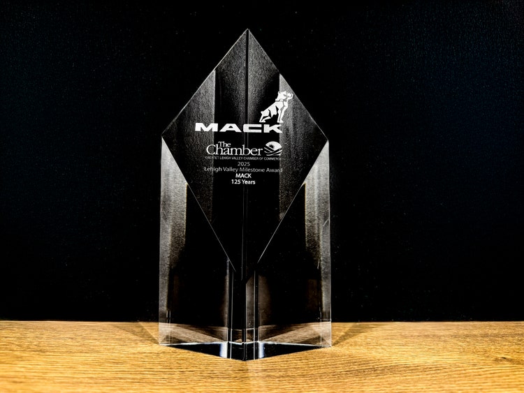 ALLENTOWN, PA (Nov. 17, 2025) - Mack Trucks recently was awarded with a Milestone Award from the Greater Lehigh Valley Chamber of Commerce for celebrating its 125th anniversary in 2025. The award was presented during the Lehigh Valley Chamber’s annual meeting at Windham Creek Resort in Bethlehem, Pennsylvania.