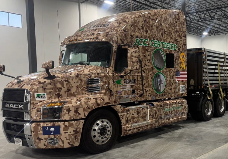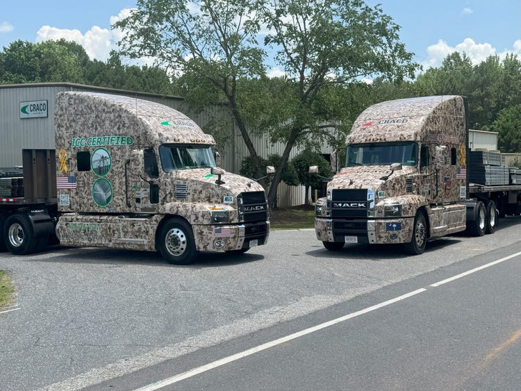 When CRACO Manufacturing’s Mack Anthems roll down America’s highways wrapped in full digital desert camo, they do more than turn heads. They carry a powerful message of patriotism and pride — from the steel they haul to the trucks themselves. For co-owners Jamie Crane and Randy Adams, it’s a rolling tribute to America’s veterans and a declaration of CRACO’s all-American values.