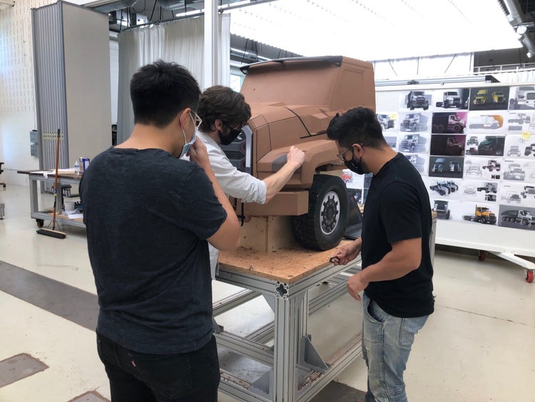 They made mockups of the truck and foam bucks that allowed them to sit inside the truck with the steering wheel in place and see how it felt to climb into the truck. Virtual reality tools were used to check for visibility and other factors.